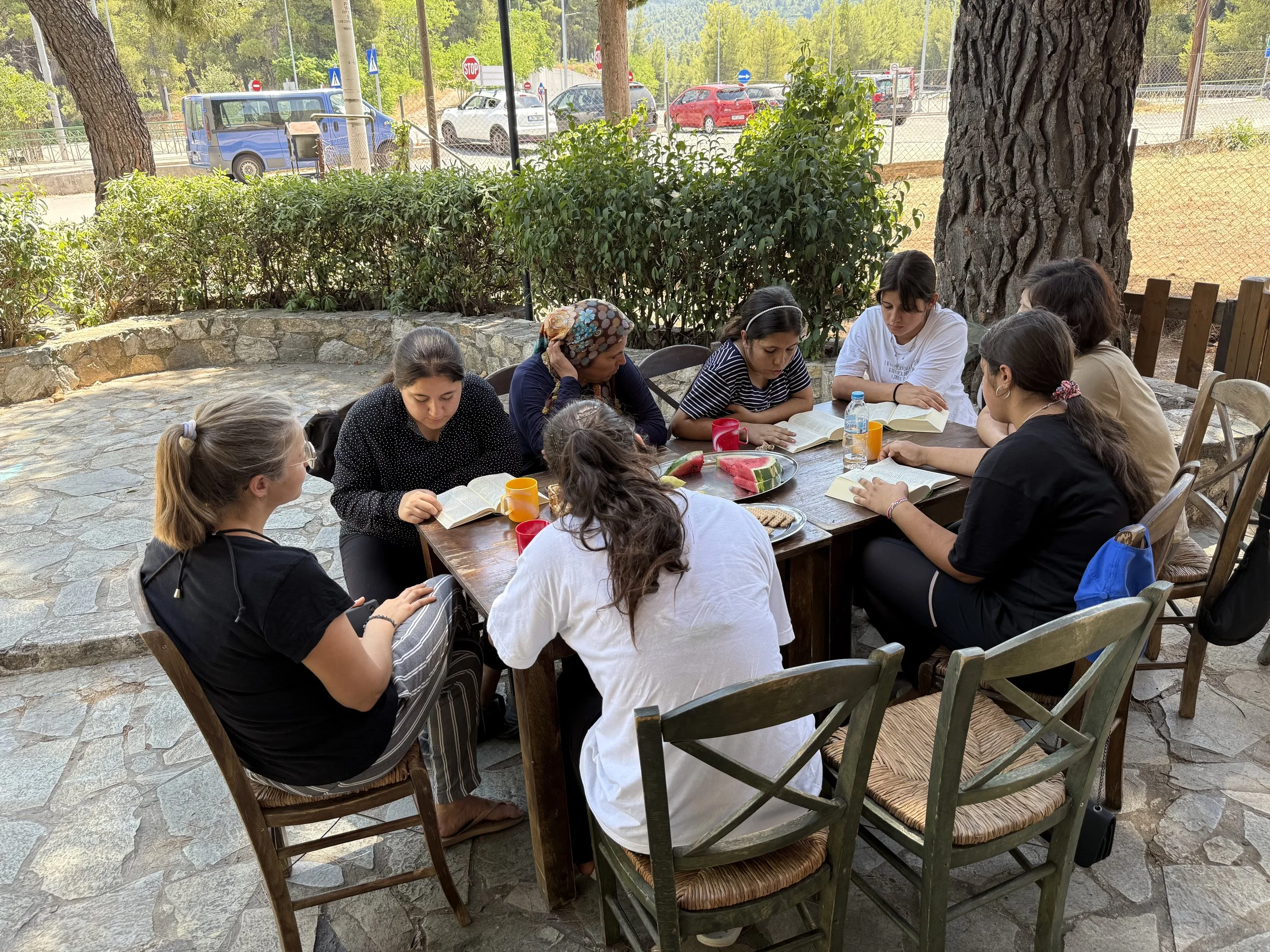 In our weekly Bible circles, men and women from diverse backgrounds sit side by side, sharing Scripture in their native languages, creating a soft murmur of prayers that crosses cultural and linguistic boundaries. Just as essential is the support we offer the youngest in our care: at the children’s corner, we see laughter breaking through the weight of trauma. Here, children engage in simple, joyful acts, coloring pictures of “home,” listening to sermons, and enthusiastically singing worship songs, reaffirming their value and fostering a sense of belonging.. -